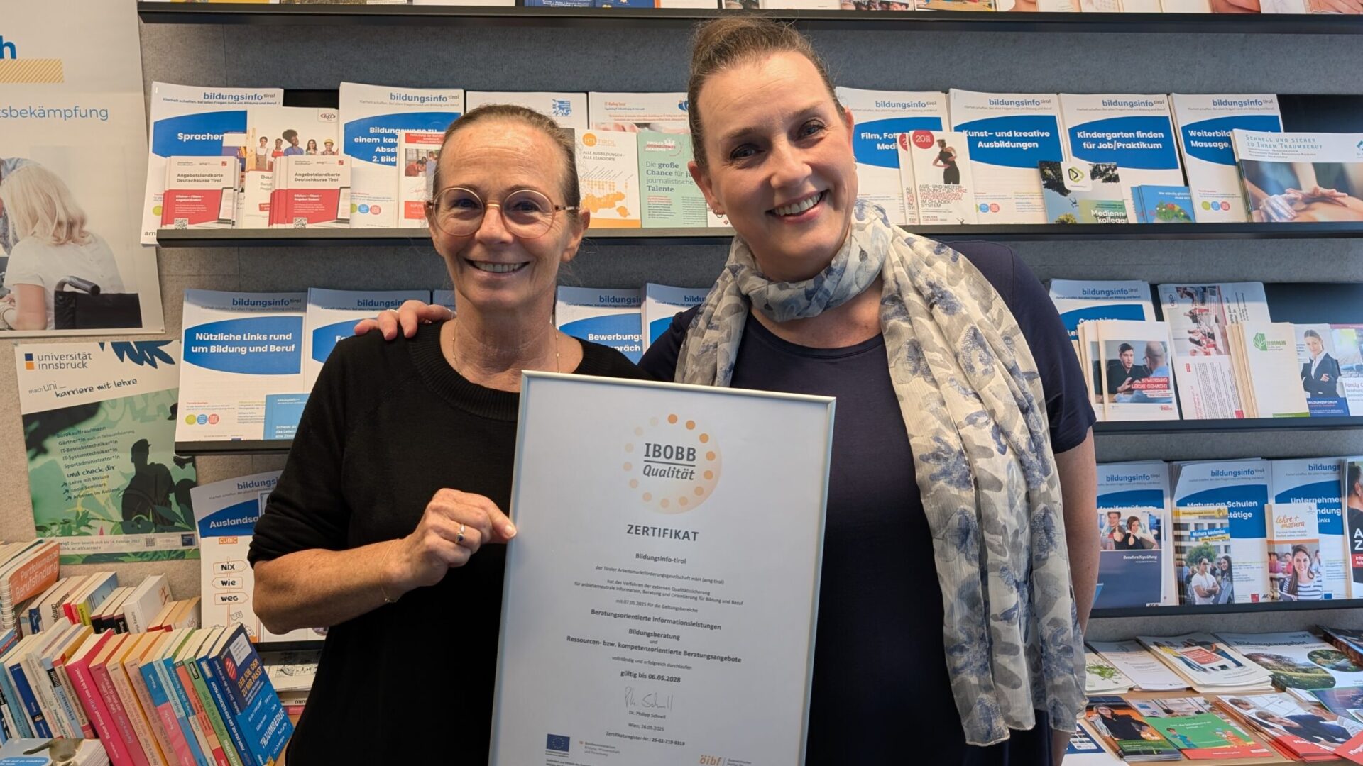 Im Mai 2025 wurde die bildungsinfo-tirol erfolgreich nach dem IBOBB-Standard rezertifiziert. Beim Vor-Ort-Besuch eines externen Prüfungsteams wurden vier zentrale Qualitätsbereiche überprüft: Unabhängigkeit und Kund*innenorientierung, strukturelle Voraussetzungen, Gleichstellungsorientierung und Qualitätsentwicklung. Alle Bereiche wurden mit „grün“ bewertet – ein Ergebnis, das bestätigt, dass die Anforderungen in höchstem Ausmaß erfüllt werden. Das Zertifikat gilt für weitere drei Jahre und steht für geprüfte Qualität in der Bildungs- und Berufsberatung.